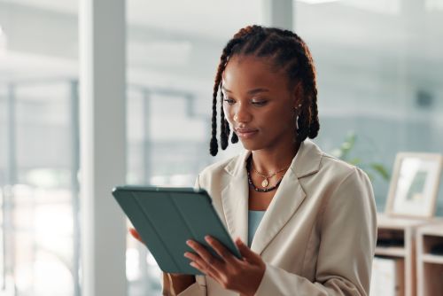 Smiling Woman in Black and Yellow Long Sleeve Shirt Holding Blue Book